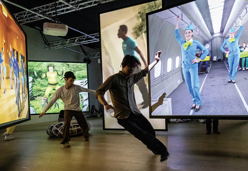 유쾌한 시작이다. 옛 서울역의 100년 역사를 품은 1층 메인홀에 걸린 8개의 대형 디스플레이에서 서로 다른 ‘춤판’이 펼쳐진다. 몸짓의 언어인 ‘춤’은 통역이나 번역이 필요 없다. 게다가 오늘날에는 쇼트폼 영상으로 언제 어디서든 스크롤 몇 번만으로 다채로운 춤을 만날 수 있다. 작가 아누크 크라이토프Anouk Kruithof는 52명의 국제 연구팀과 함께 2018년부터 세계 곳곳의 춤 양식을 조사하는 댄스 리서치 프로젝트를 시작했다. 작가는 유튜브·페이스북·인스타그램에서 수집한 196개국, 250시간 분량, 1천여 개 춤 스타일을 품은 8,800편 영상을 확보했다. 트월킹, 보그, 포트나이트 춤, 플래시몹, 수피 춤, 뮤지컬 체어 게임 등 다양한 몸짓에서 춤이 지닌 자기표현과 주체적 가능성을 발견했다. 네 시간 길이로 제작된 몰입형 설치 작업 <전 지구의 언어Universal Tongue>2018-21 영상을 보노라면 끊임없이 반복되는 움직임 속에 어느새 국적도 문화도 희미해진다. 동시에 고정되지 않고 계속 움직이며 뒤섞이는 지구의 유동성과 혼종성이 감지된다. 디지털 미디어 시대에 춤과 움직임이라는 몸의 언어가 어떻게 보편성과 특수성 사이를 파고드는지를 알게 한다.