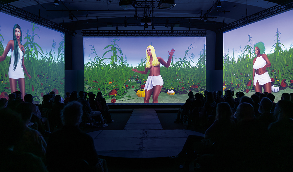 스카웨나디, <정원에 오신 것을 환영합니다>, 2024, 3채널 머시니마 뮤직 비디오, 가변 크기, 후원 주한퀘백정부대표부, AbTeC, 협력 일렉트라