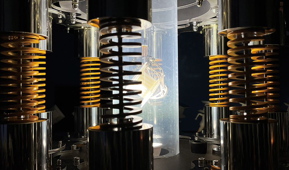 최민규, <무한의 방과 누군가의 궤도>, 2025, 설치 및 비디오, 스테인리스, 3D 프린트, 철판, LED 패널, 모터, 205×230×230cm
