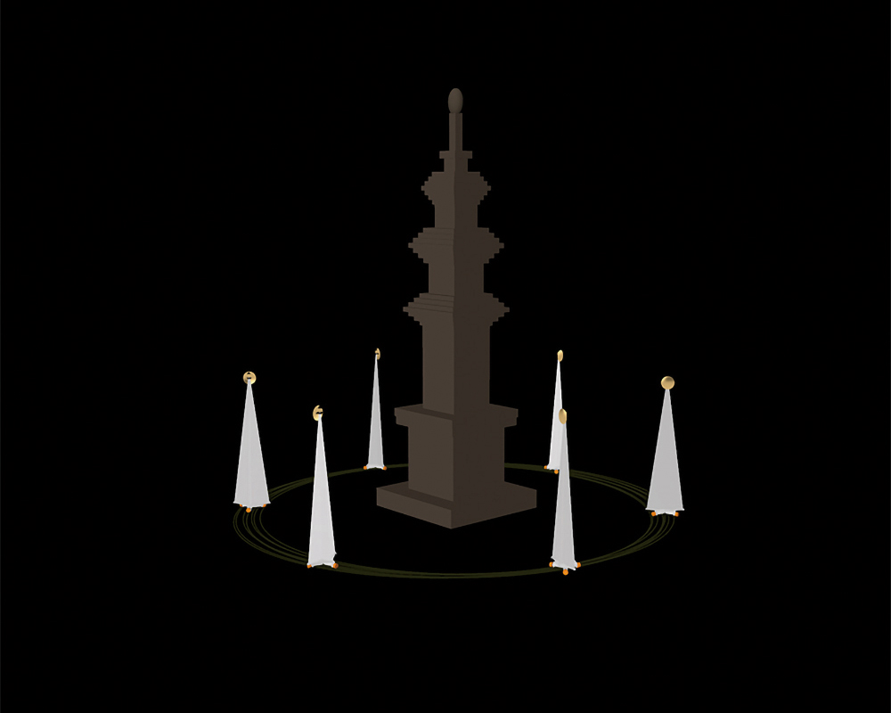 신작 <원형의 원>2025은 기술이 인간처럼 주체성을 가질 수 있는지에 대한 질문에서 출발한다. 높은 중심 탑을 둘러싼 바퀴 달린 기계들은 규칙에 따라 회전하고 멈추기를 반복한다. 이 순환 구조는 인간이 오래전부터 행한 기원 행위나 공동체적 제의를 연상시키며 기계들이 마치 자신의 존재와 지속을 기원하려는 듯한 인상을 남긴다. 관람객은 어느 순간 그 움직임을 기도와 순례에 가까운 행위로 인식하고, 이때 기계적 반복은 인간의 의미 체계와 겹치면서 감정적 동질감을 이끌어낸다.