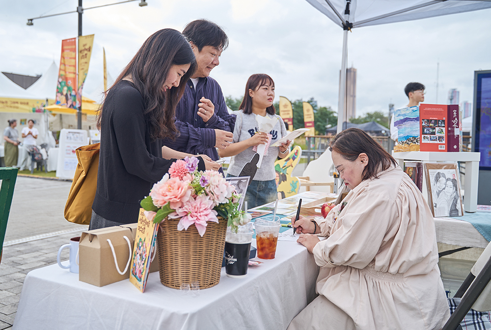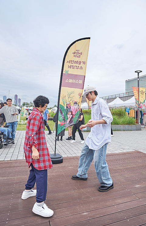 노들섬 곳곳에서는 시민예술가들이 진행하는 체험 프로그램이 이어졌다. 휠체어 이용자와 시민이 함께 제작하는 친환경 휠체어 가드 체험 ‘씨오씨랩’, 발달장애 예술가와 시민이 함께 완성하는 드로잉 체험 ‘레아트’, 문호리 리버마켓이 참여한 작가농부마켓까지 생활예술의 가치가 체험과 마켓으로 확장됐다. 문호리 리버마켓은 ‘손으로 직접 만든 사람들’이 주인공인 작가주의 마켓이다. 생산자가 자신의 손으로 만든 물건을 통해 소비자와 삶의 이야기를 나누는 장면이 이어진다. 생활예술의 정신이 시장의 형태로 진화한 모습이다.