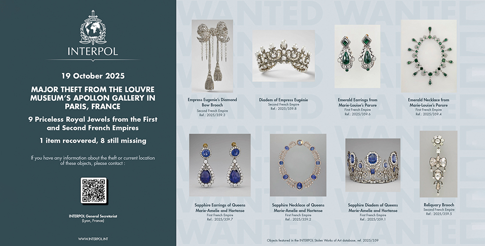 인터폴에 공개된 루브르 박물관 아폴론 갤러리 도난품