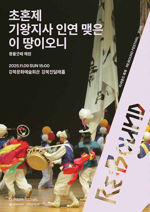 지역의 우수 창작 공연을 발굴하는 리:바운드 축제 선정작 <초혼제>가 11월 9일 오후 3시 강북문화예술회관 강북진달래홀에서 열린다. 전통예술에 스토리텔링이 어우러지고 연희·뮤지컬처럼 보는 재미를 더한 독창적인 공연이다. 티켓은 전석 1만 원이며, 강북구민은 5천 원에 관람 가능하다. 자세한 정보는 강북문화재단 누리집(gbcf.or.kr)에서 확인할 수 있다.