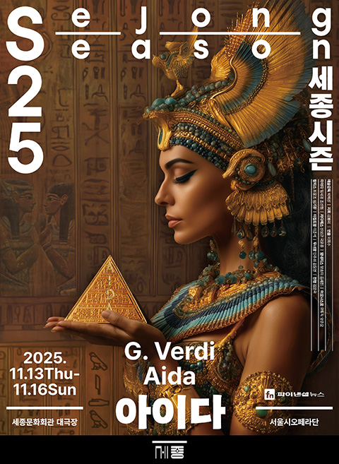 고대 이집트를 배경으로 합창·오케스트라·무용이 어우러져 장대한 규모를 자랑하는 오페라 <아이다>가 세종문화회관 대극장에 올려진다. 서울시오페라단이 창단 40주년을 맞아 준비한 작품으로, 200여 명의 출연진이 압도적인 감동을 선사할 계획. 아이다 역에 소프라노 임세경·조선형, 라다메스 역으로 테너 신상근·국윤종, 암네리스 역에 메조소프라노 양송미·김세린, 아모나스로 역에 바리톤 유동직·양준모가 출연한다. 지난해 <운명의 힘>으로 호평을 받은 이회수가 연출을 맡았다.