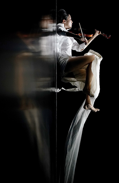 색 모래를 사용해 움직임의 흐름을 시각화한 <사방치기>2018, LED 패널을 활용해 미디어아트와의 결합을 실험한 <움직임과 오브제, 그리고 미디어에 관한 연구들>2021, 고무줄로 움직임의 긴장과 이완을 시각화한 <AGOGICS>2020 등 다양한 오브제와 장치를 활용해 시간과 움직임의 흔적을 시각화하거나 오감으로 변환하는 시도를 이어오고 있습니다. 서울무용센터에서는 입주예술가로서는 <invisible moments>라는 제목으로 ‘보이지 않는 것’이라는 주제를 좀 더 깊게 탐구하고 있습니다.