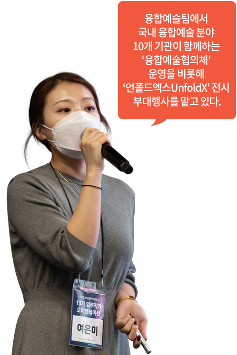 여은미 여러 부서의 구성원이 한자리에서 논의하다보면 각자의 상황과 이해관계를 정확히 파악할 수 있고, 조직의 고민에 대해 현실적인 대안을 제시할 수 있겠다고 생각했습니다. 한편으로는 각자 다른 상황에 처한 구성원이 그리는 재단의 미래는 어떤 것인지 궁금해지기도 했고요.
