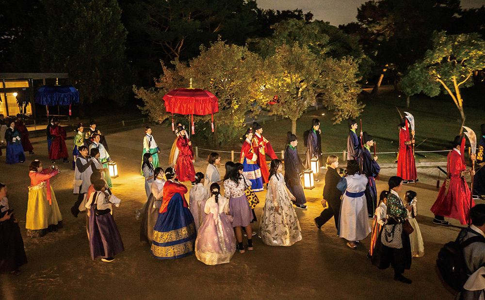 국내 최대 국가유산 축제인 궁중문화축전이 가을을 맞아 돌아왔다. 특히 세대와 국적을 넘어 모두가 즐길 수 있는 참여의 장을 마련했다. 어린이들이 황실 교육을 체험할 수 있는 덕수궁 ‘준명당 어린이 학교’, 청소년을 위한 탐험형 체험 프로그램 ‘종묘 건축 탐험대’, 60세 이상 시니어를 대상으로 한 전통 화훼 체험 프로그램 ‘동궐 장원서’ 등이다. 외국인을 위한 경복궁 ‘한복 연향’과 창덕궁 ‘아침 궁을 깨우다’ 등 프로그램도 활짝 문을 연다. 언제나 인기리에 진행되는 각종 해설 프로그램과 인문학 콘서트, 야간 미디어아트 프로그램 등도 준비돼 있으니 궁궐에서 보내는 가을을 놓치지 말 것.