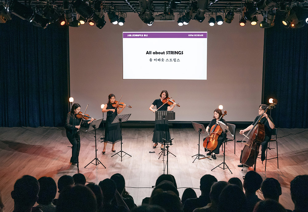 9월 9일부터 13일까지 가을 시즌 개막을 알린 오프닝 주간에는 각 장르의 대표 프로그램을 미리 경험하는 자리가 펼쳐졌다. 피아니스트 임수연과 콰르텟 서울의 ‘올 어바웃 스트링스ALL ABOUT STRINGS’, 시인 김현과 싱어송라이터 시와의 ‘사랑할 때 우리가 말하(지 않)는 것들’, 미술비평가 김지연과 시인 안희연의 ‘미술낭독: 미술과 함께 더 멀리뛰기’, 첼리스트 홍진호 듀오의 ‘음악이 채워진 페이지, 클라이맥스Climax’가 가을의 첫인사를 건넸다. 이어 25일과 26일 양일간 진행된 특별 연계 프로그램 ‘창작과 공연’에서는 재즈피아니스트 진수영과 밴드 만동이 최경주 작가의 전시와 연계한 공연을 선보였다.